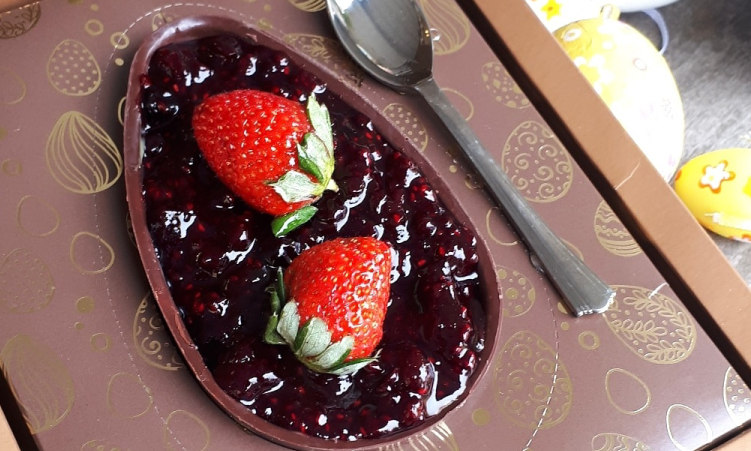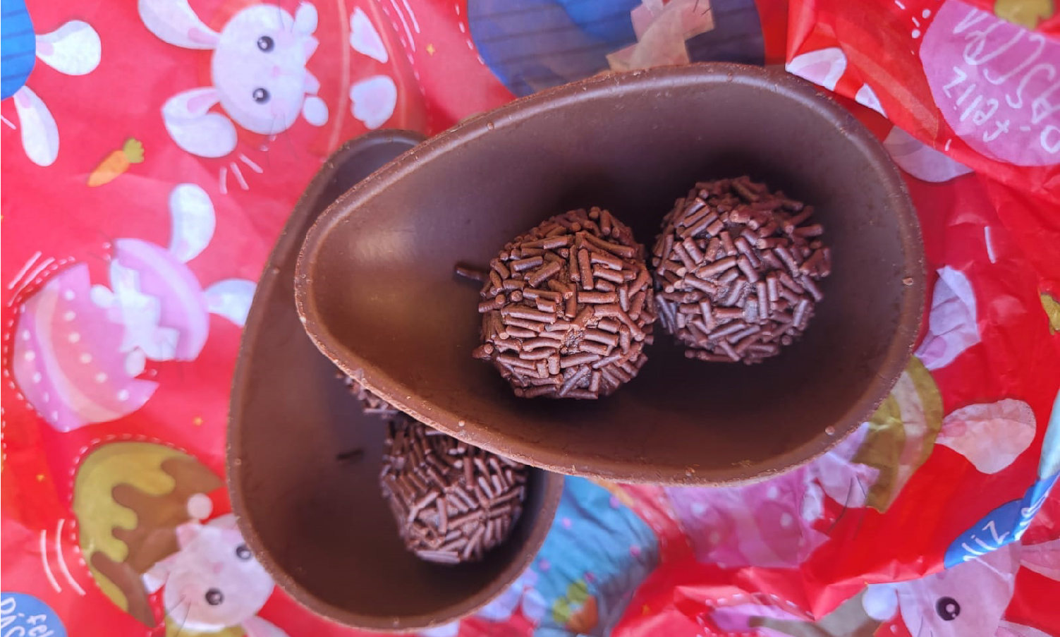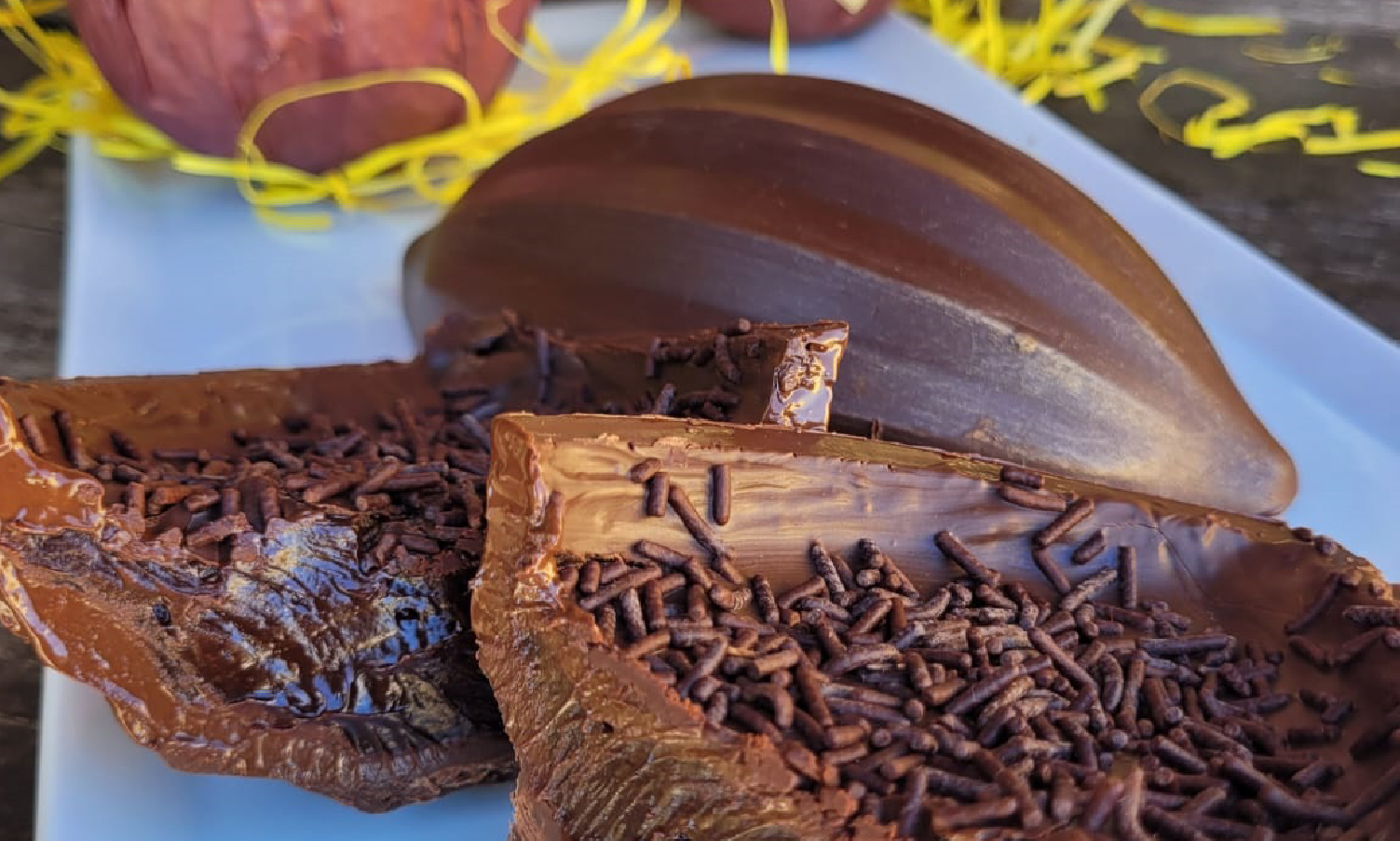 Chocolat - Chantilly de chocolate Donana, decoração com orelhas e mini ovos